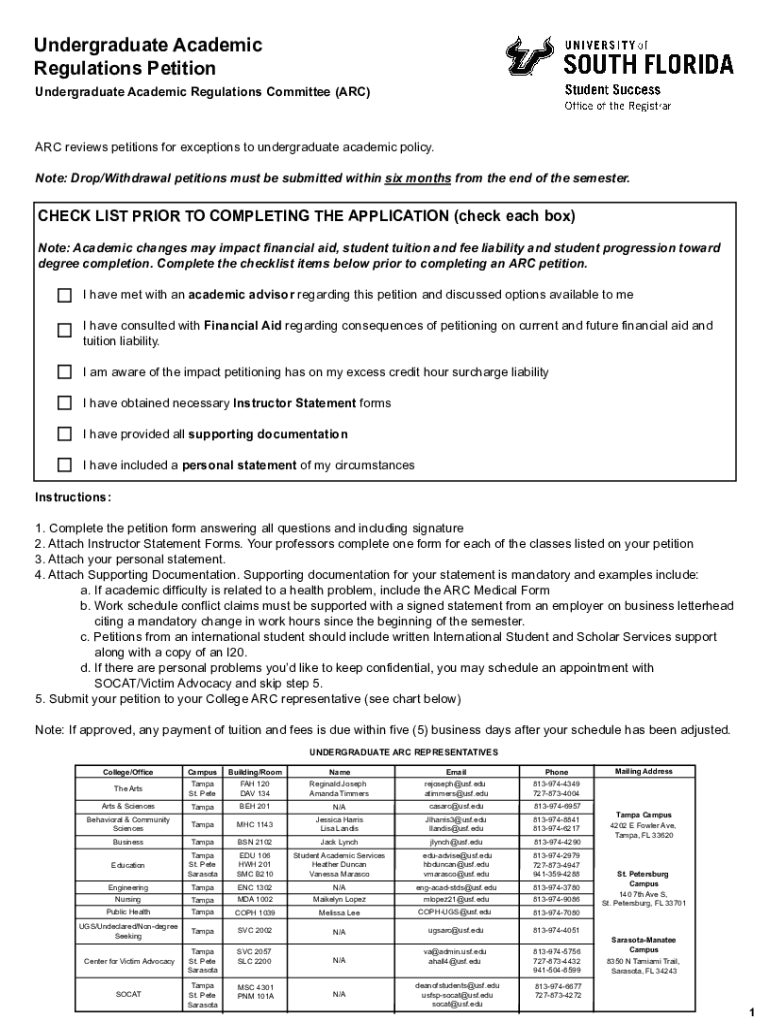 Undergraduate Academic Regulations Petition Undergraduate Academic Regulations Committee (ARC)ARC reviews petitions for exceptions to undergraduate academic policy. Note: Drop/Withdrawal petitions