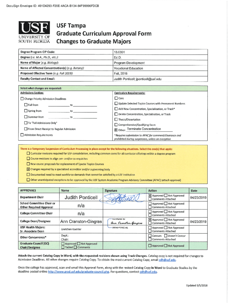 DocuSign Envelope ID: 491D4293F20E4ACAB13484F99996FDCBDocuSign Envelope ID: 491D4293F20E4ACAB13484F99996FDCBDocuSign Envelope ID: 9A9B1BCB923343FCA60E74EA0820E60AUSF Tampa Graduate Curriculum Approval