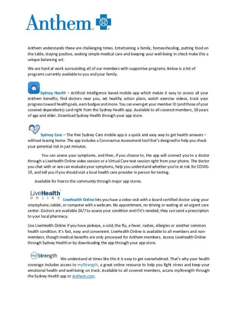 Get the free Anthem understands these are challenging times. Entertaining a ...