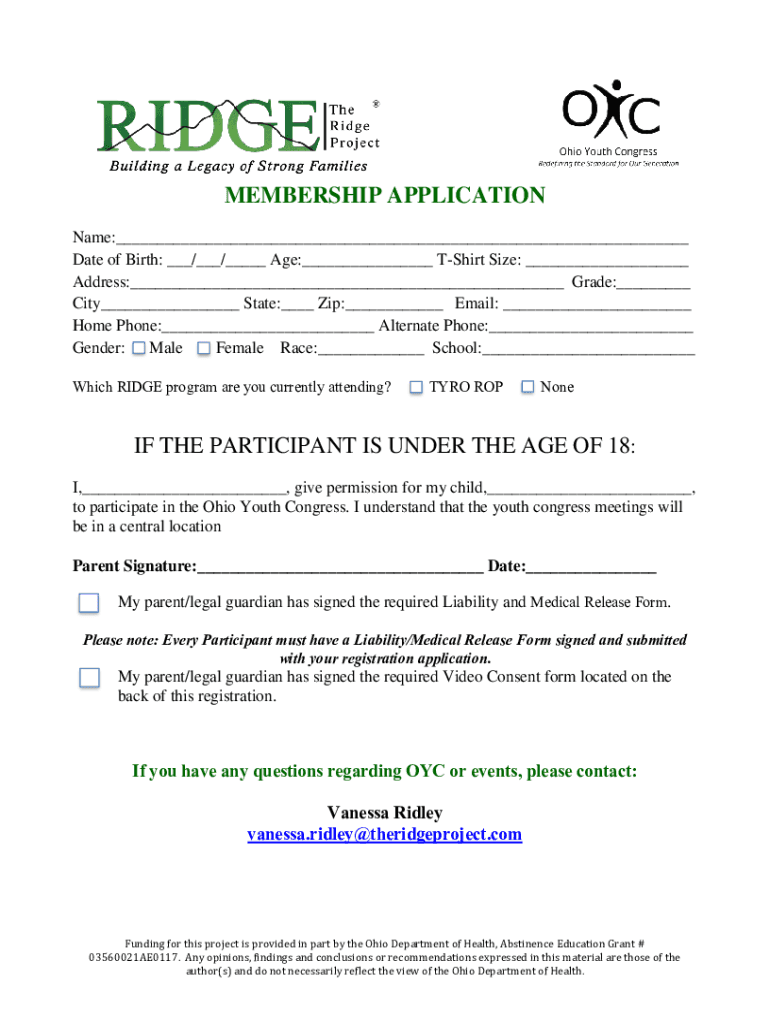 MEMBERSHIP APPLICATION Name:___ Date of Birth: ___/___/___ Age:___ Shirt Size: ___ Address:___ Grade:___ City___ State:___ Zip:___ Email: ___ Home Phone:___ Alternate Phone:___ Gender: Male Female