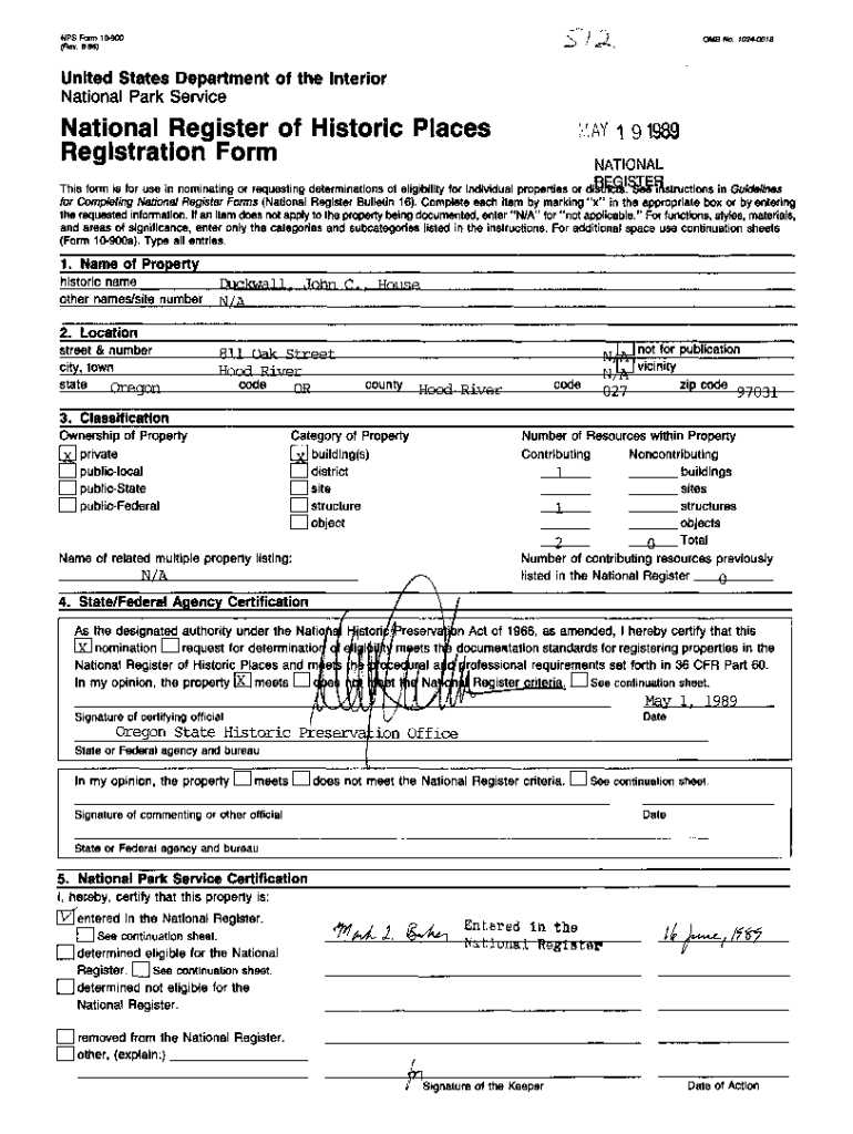 7NFS Form 10900 (Rev. 8S6)0 MB Mo. 10244018United States Department of the Interior National Park ServiceNational Register of Historic Places Registration Format 191989 NATIONALREGISTER This form