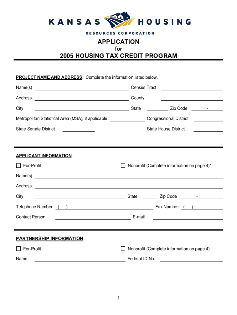 APPLICATION for2005 HOUSING TAX CREDIT PROGRAM PROJECT NAME AND ADDRESS: Complete the information listed below. Name(s)Census TractAddressCountyCityStateZip CodeMetropolitan Statistical Area (MSA),
