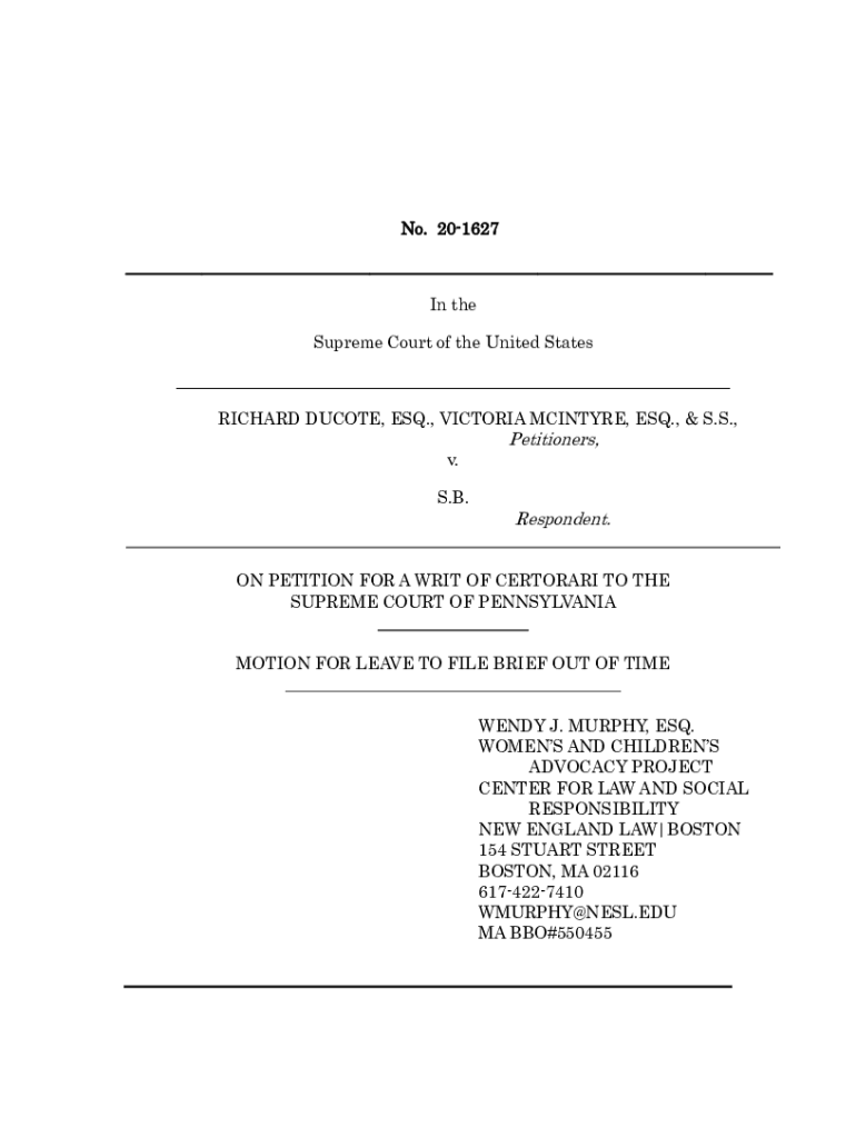 No. 201627 ___ In the Supreme Court of the United StatesRICHARD DENOTE, ESQ., VICTORIA McIntyre, ESQ., & S.S., v. S.B. Petitioners, Respondent. ON PETITION FOR A WRIT OF CERTIORARI TO THE SUPREME