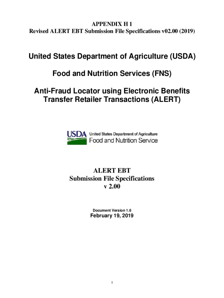 APPENDIX H 1 Revised ALERT DEBT Submission File Specifications v02.00 (2019)United States Department of Agriculture (USDA) Food and Nutrition Services (FNS) Antifa Locator using Electronic Benefits