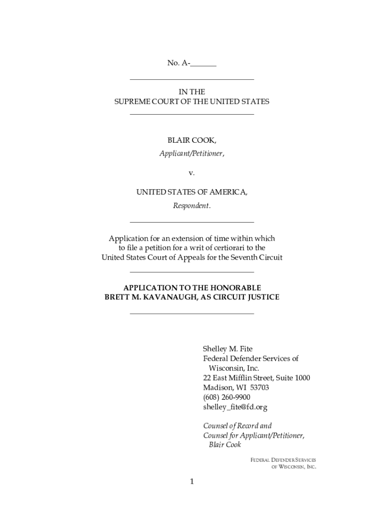 Get the free No. A- SUPREME COURT OF THE UNITED STATES BLAIR COOK,