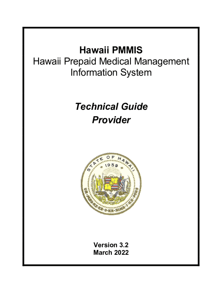 Hawaii PM MIS Hawaii Prepaid Medical Management Information System Technical Guide ProviderVersion 3.2 March 2022Hawaii PM MIS Hawaii Prepaid Medical Management Information System Technical Guide
