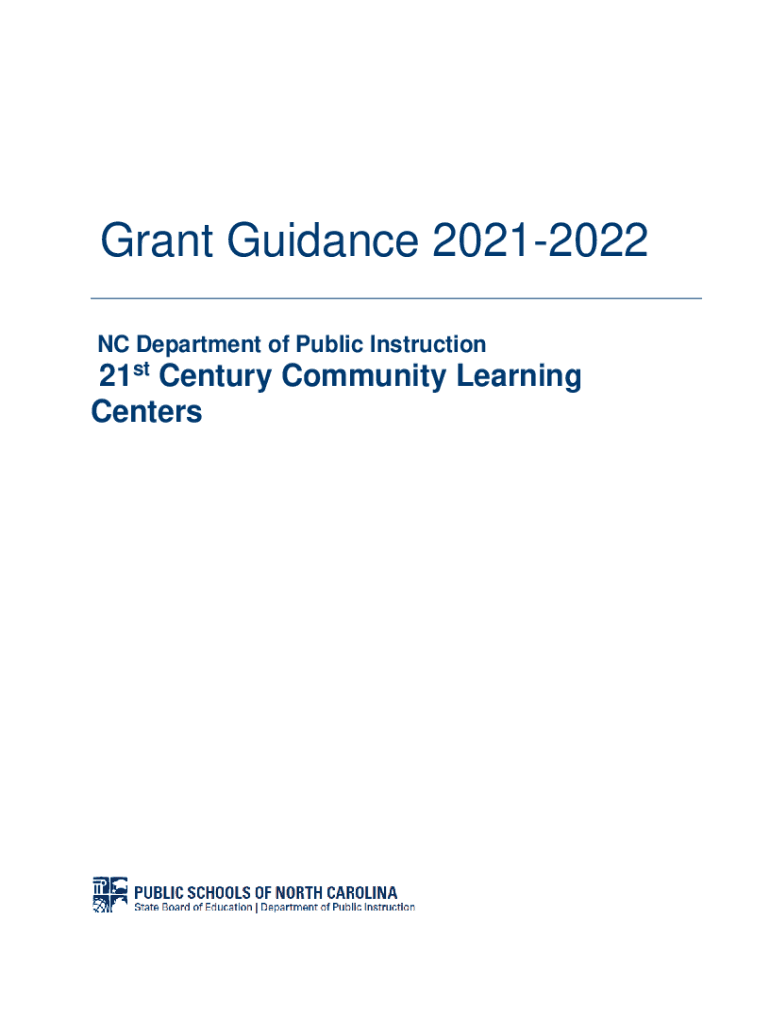 Grant Guidance 20212022 NC Department of Public Instruction21st Century Community Learning Intersection 1: GENERAL INFORMATION .............................................................................