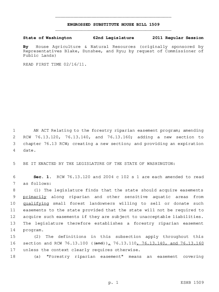___ ENGROSSED SUBSTITUTE HOUSE BILL 1509 ___ State of Washington62nd Legislature2011 Regular Session House Agriculture & Natural Resources (originally sponsored by Representatives Blake, Dundee, and