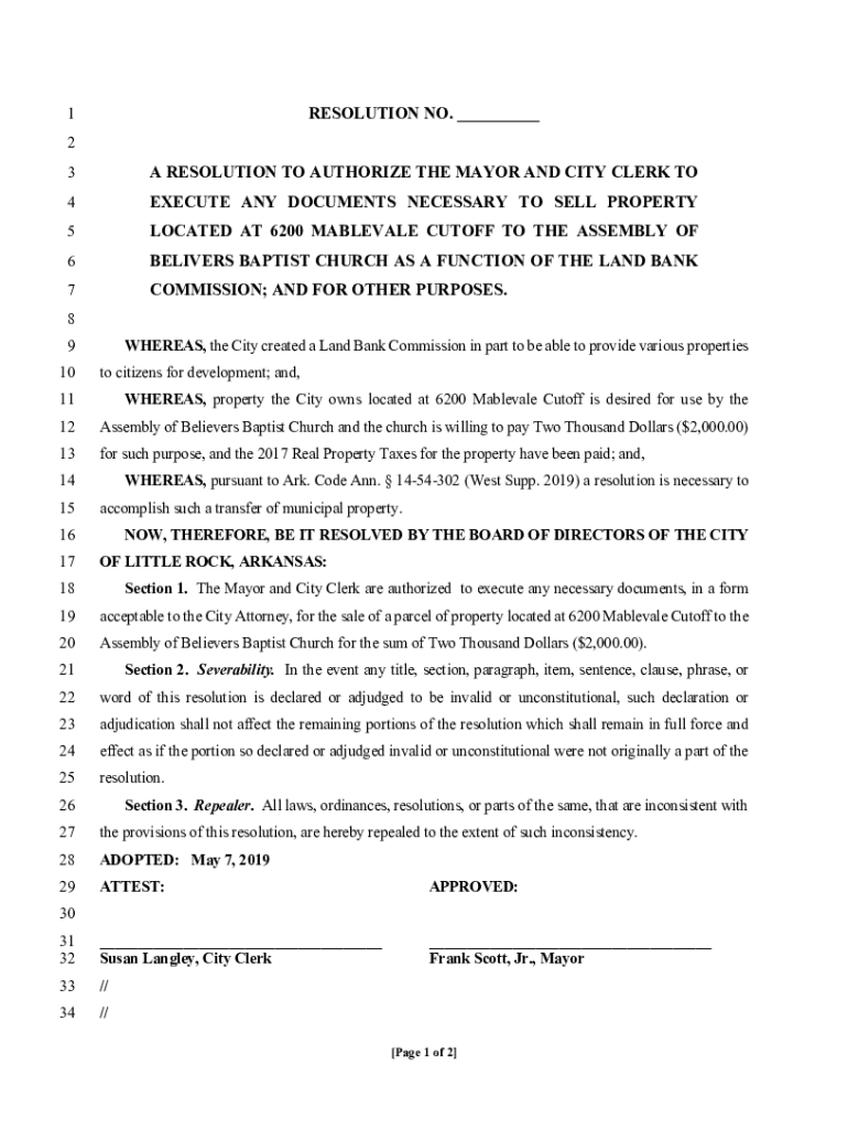 Get the free A RESOLUTION TO AUTHORIZE THE MAYOR AND CITY CLERK ...
