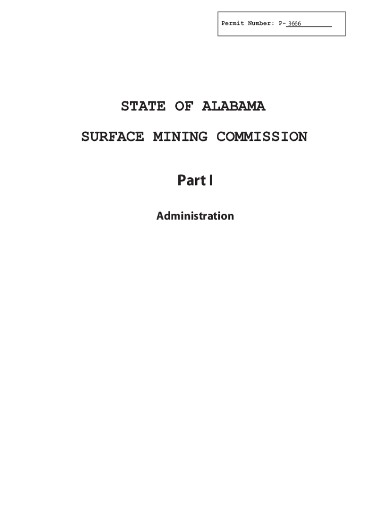 Permit Number: P___ 3666STATE OF ALABAMA SURFACE MINING Commissioner I AdministrationPermit Number: P___ 3666STATE OF ALABAMA SURFACE MINING COMMISSION Permit Application for: an Underground Coal