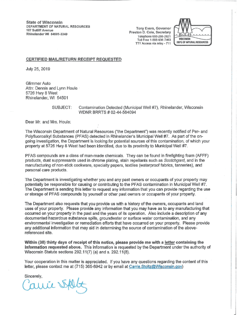 State of Wisconsin DEPARTMENT OF NATURAL RESOURCES 107 Stiff Avenue Rhinelander WI 545013349Tony Every, Governor Preston D. Cole, Secretary Telephone 6082662621 Toll Free 18889367463 TRY Access via