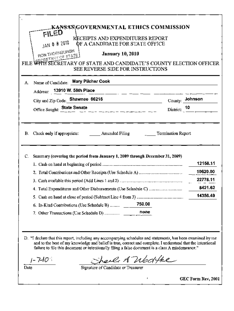 Get the free KANSAS GOVERNMENTAL ETHICS COMM:::FILED RECEIPTS AND ... - ethics ks
