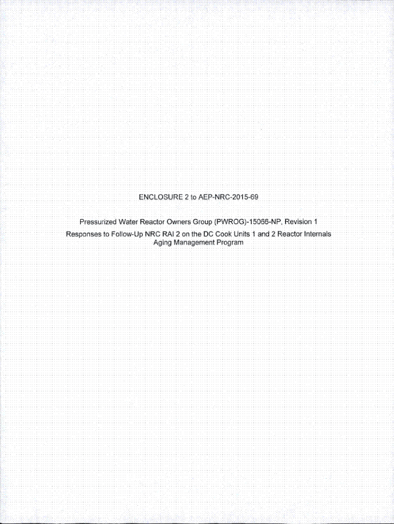 ENCLOSURE 2 to AEPNRC201569 Pressurized Water Reactor Owners Group (PRO)1 5066NP, Revision 1 Responses to Followup NRC RAI 2 on the DC Cook Units 1 and 2 Reactor Internals Aging Management ProgramWESTINGHOUSE