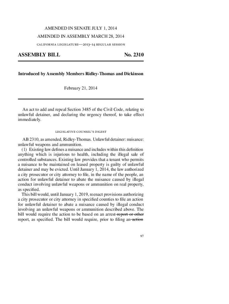AMENDED IN SENATE JULY 1, 2014, AMENDED IN ASSEMBLY MARCH 28, 2014, California legislature201314 regular sessionASSEMBLY BILL No. 2310Introduced by Assembly Members RidleyThomas and Dickinson February