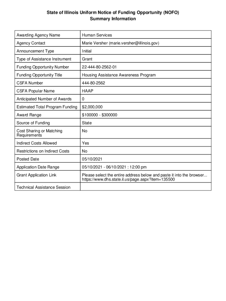 State of Illinois Uniform Notice of Funding Opportunity (NO FO) Summary InformationAwarding Agency Cameraman ServicesAgency Contact Marie Verse (Marie.verse×Illinois.gov)Announcement TypeInitialType