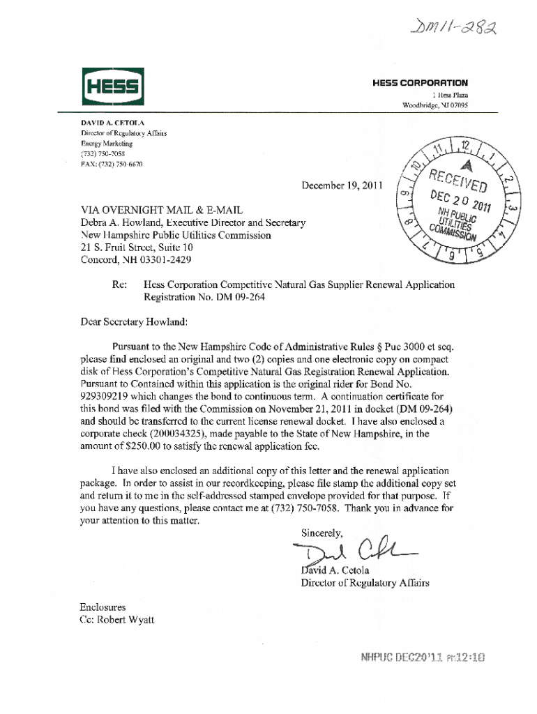 LESS CORPORATION Woodbridge, NJ 07095DAVID A. CET OLA Director of Regulatory Affairs Energy Marketing (732) 7507058 FAX: (732) 7506670December 19, 2011 VIA OVERNIGHT MAIL & EMAIL Debra A. Howland,