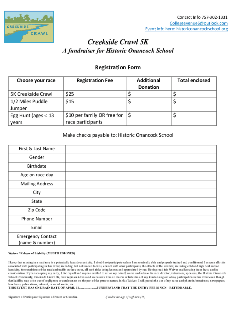 Contact Info 7573021331 Collegeavenue6×outlook.com Event info here: historiconancockschool.org Creekside Crawl 5KA fundraiser for Historic Hancock School Registration Form Choose your race 5K Creekside