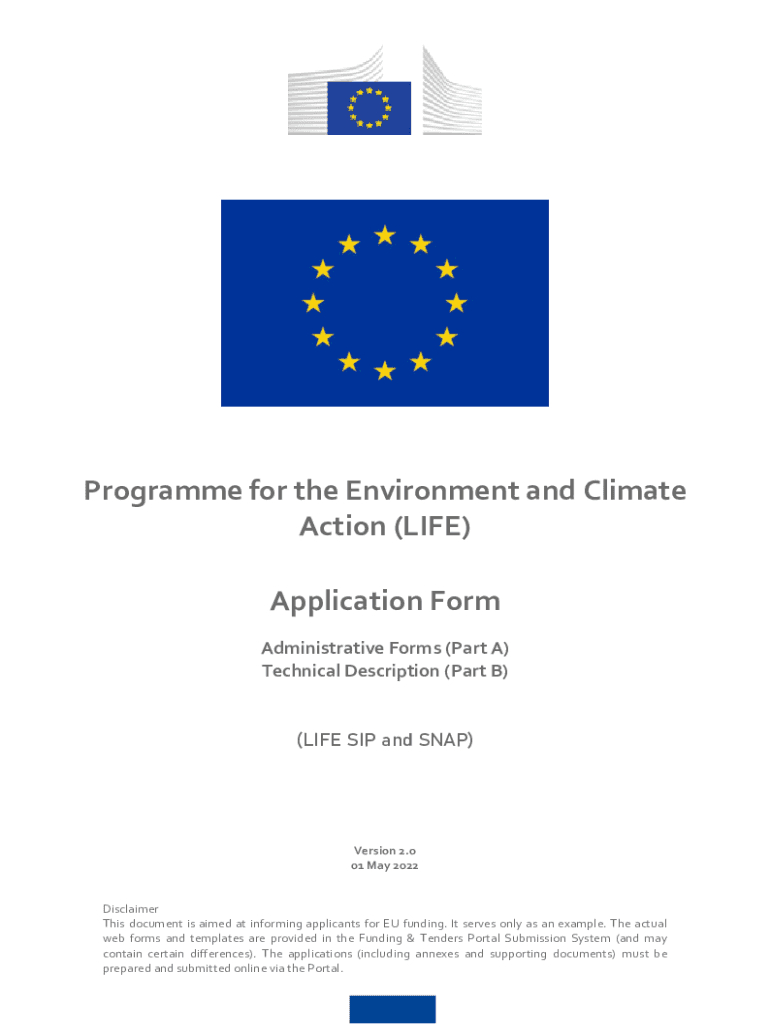 Program for the Environment and Climate Action (LIFE) Application Form Administrative Forms (Part A) Technical Description (Part B)(LIFE SIP and SNAP)Version 2.0 01 May 2022Disclaimer This document