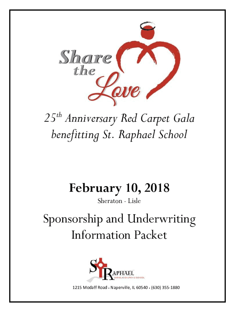 25th Anniversary Red Carpet Gala benefitting St. Raphael School February 10, 2018, Sheraton LisleSponsorship and Underwriting Information Packet1215 Modify Road Naperville, IL 60540 (630) 355188025th