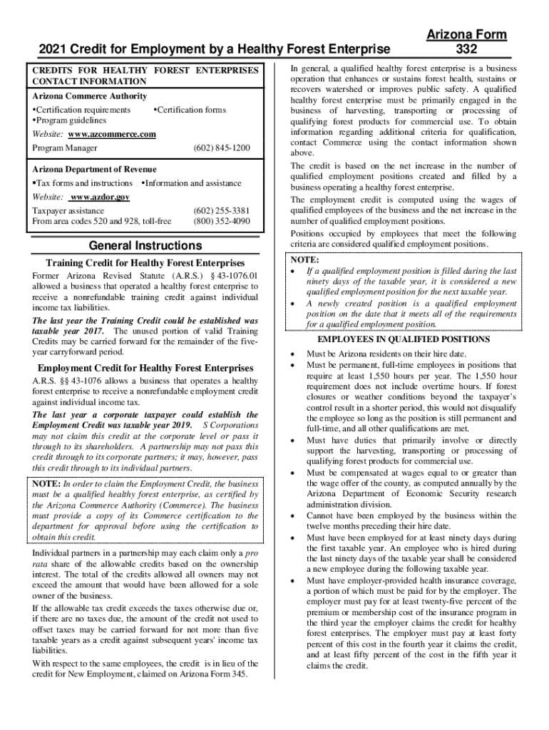 2021 Credit for Employment by a Healthy Forest Enterprise CREDITS FOR HEALTHY FOREST ENTERPRISES CONTACT INFORMATION Arizona Commerce Authority Certification requirements Certification forms Program