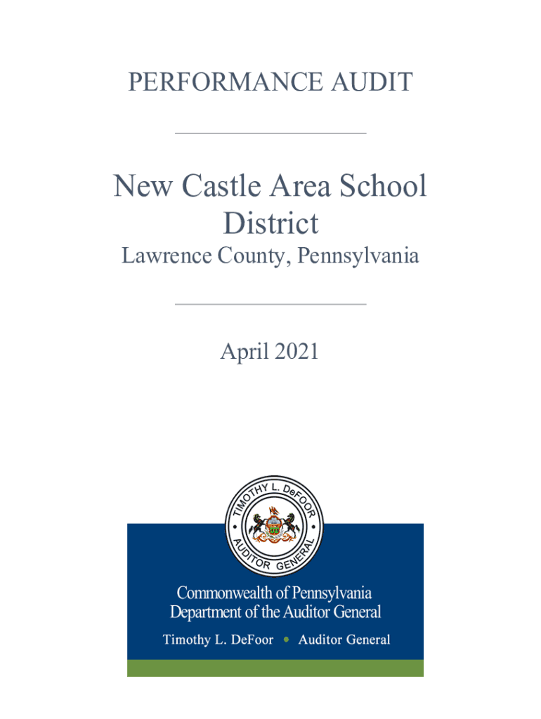 PERFORMANCE AUDIT___New Castle Area School District Lawrence County, Pennsylvania___ April 2021Mrs. Debra A. Deflation, Superintendent New Castle Area School District 420 Fern Street New Castle, Pennsylvania