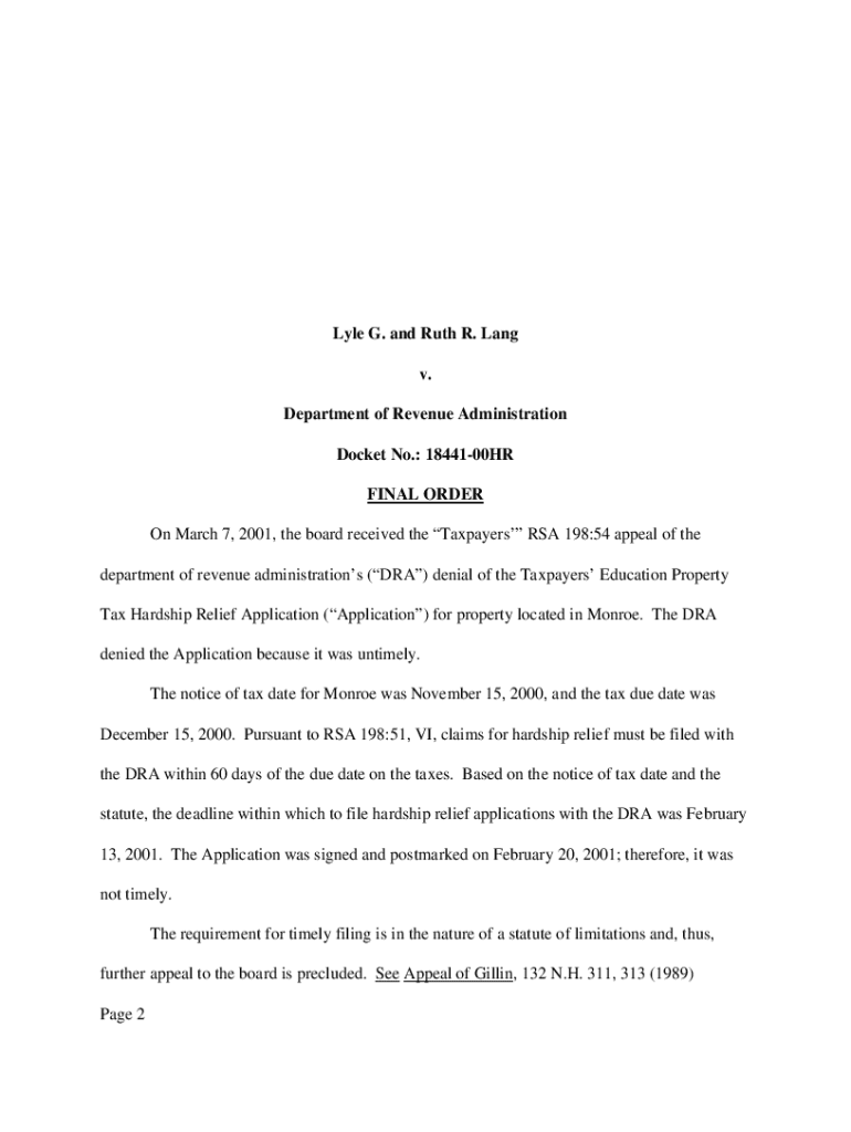Get the free www.nh.govbtladecisionsRuth A. and Louis W. Bossie v. Department of Revenue ...