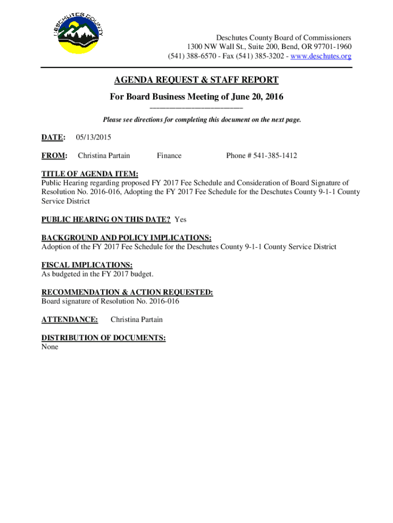Descartes County Board of Commissioners 1300 NW Wall St., Suite 200, Bend, OR 977011960 (541) 3886570 Fax (541) 3853202 www.deschutes.orgAGENDA REQUEST & STAFF REPORT For Board Business Meeting of