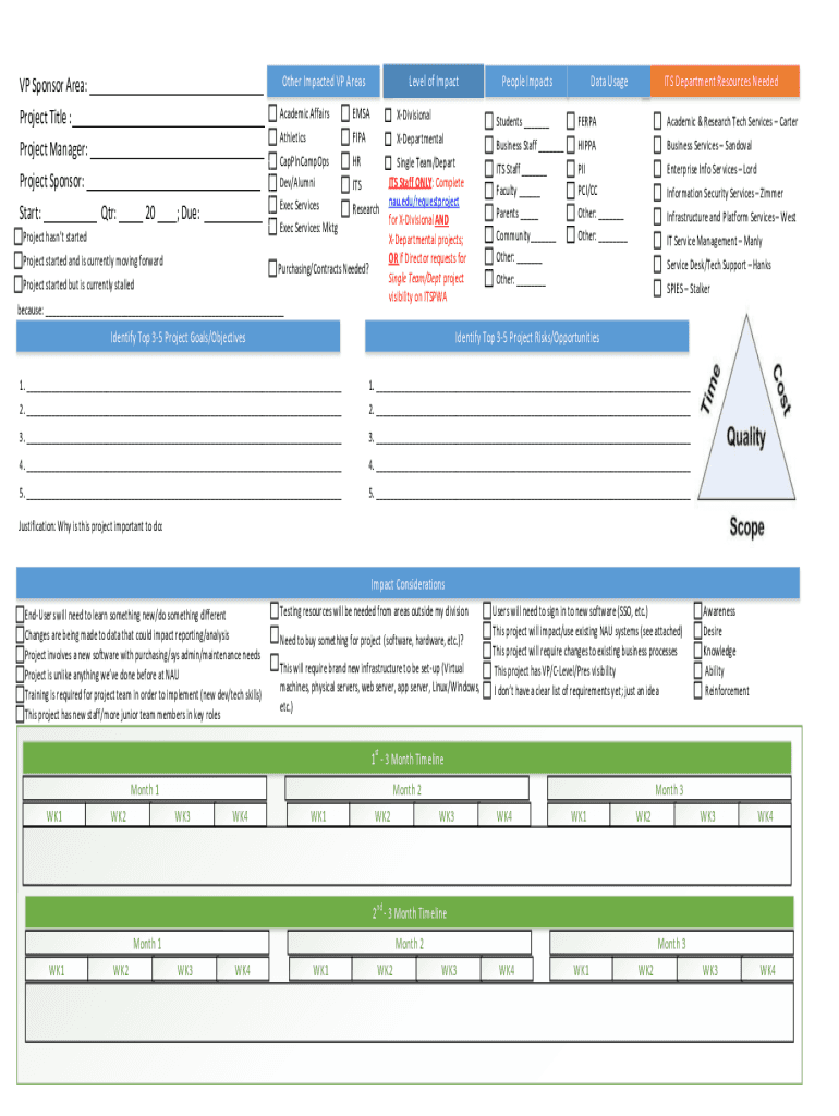 VP Sponsor Area: ___ Project Title :___ Project Manager: ___Project Sponsor: ___ Start: ___ MTR: ___ 20 ___; Due: ___ Project hasn't started Project started and is currently moving forwarder Impacted