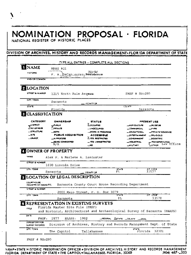 Npgallerynpsgovpdfhostdocsnomination Proposalflorida - National is not the form you're looking for?Search for another form here.