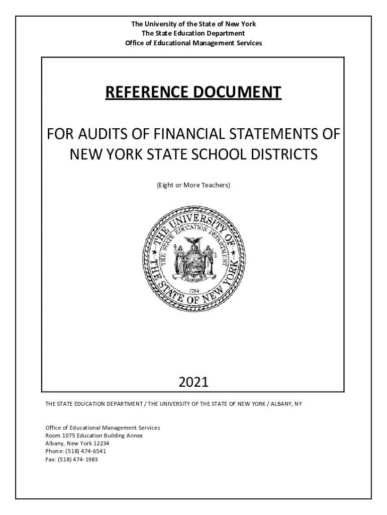 The University of the State of New York The State Education Department Office of Educational Management ServicesREFERENCE DOCUMENT FOR AUDITS OF FINANCIAL STATEMENTS OF NEW YORK STATE SCHOOL DISTRICTS