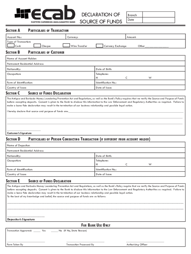 DECLARATION OF SOURCE OF FUNDS Section Particulars of TransactionAccount No.:Currency:Type of Transaction: ___ Cash ___ ChequeSection Branch Paramount:___ Wire Transfer___ Currency ExchangeOther___Particulars