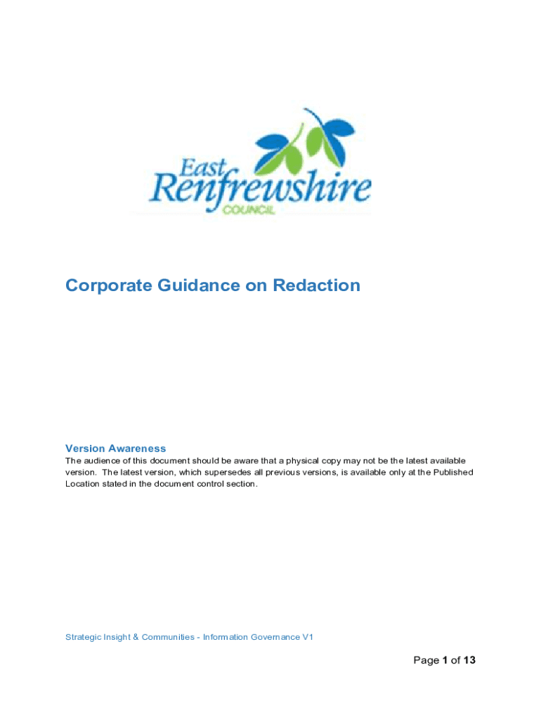 Corporate Guidance on RedactionVersion Awareness The audience of this document should be aware that a physical copy may not be the latest available version. The latest version, which supersedes all