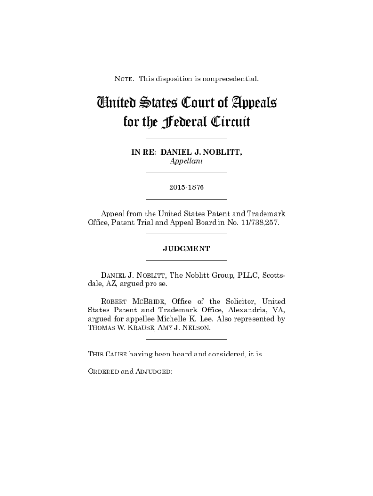 NOTE: This disposition is nonresidential. United States Court of Appeals for the Federal Circuit ___IN RE: DANIEL J. NOBILITY, Appellant ___ 20151876 ___ Appeal from the United States Patent and Trademark
