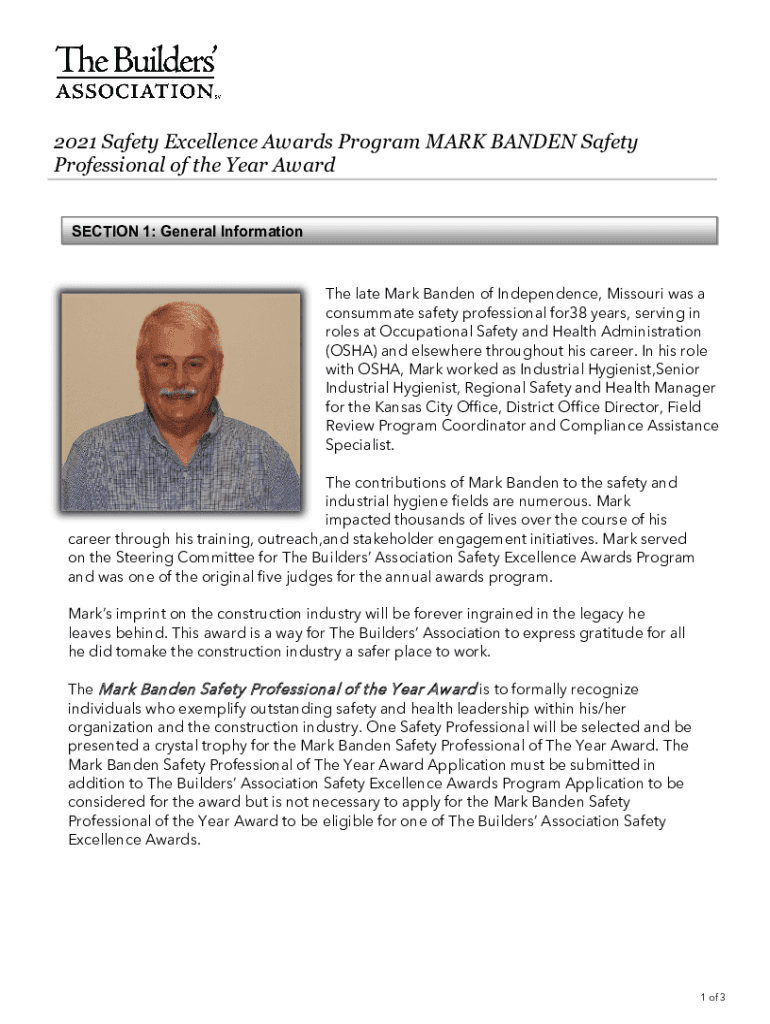 Get the free buildersassociation.comcommonUploaded files2021 Safety Excellence Awards Program MAR...
