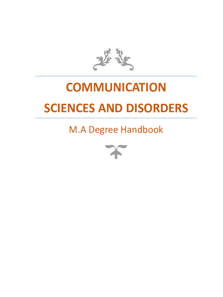 COMMUNICATION SCIENCES AND DISORDERS M. A Degree HandbookTable of Content Sr. NoTitlePage No. I. Communication Sciences and Disorders Faculty3II. Master of Arts Degree in Communication Sciences and