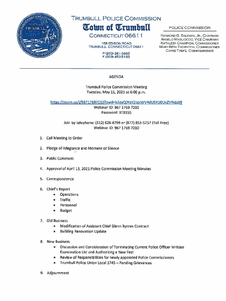 Get the free POLICE DEPARTMENT Town of Trumbull POLICE COMMISSION ...