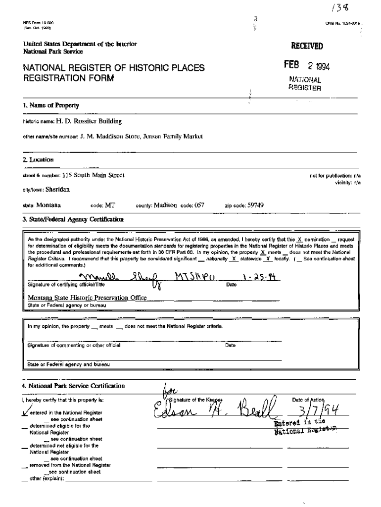 Get the free NPS Form 10-900 OMBNo. 1024-0018 United States Department ...
