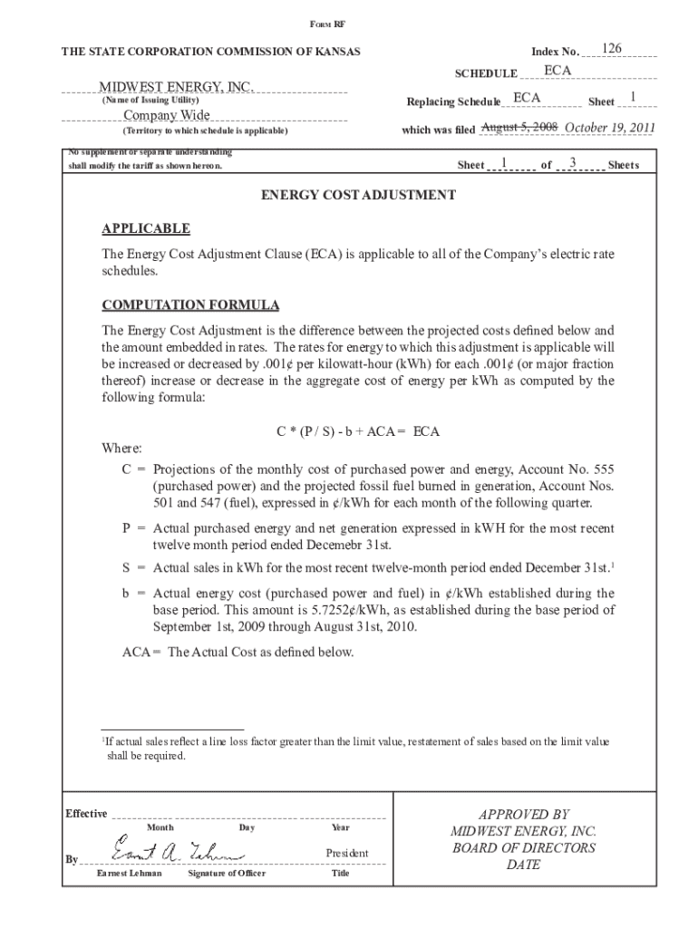 Form RFIndex No. _ _ _ _ 126 ___THE STATE CORPORATION COMMISSION OF KANSASSCHEDULE _ _ _ _ _ECA ___MIDWEST ENERGY, INC._ _ _ _ _ _ _ _ _ _ _ _ _ _ _ _ _ _ _ _ _ _ _ _ _ _ _ _ _ _ _ _ _ _ _ _ _ _ _