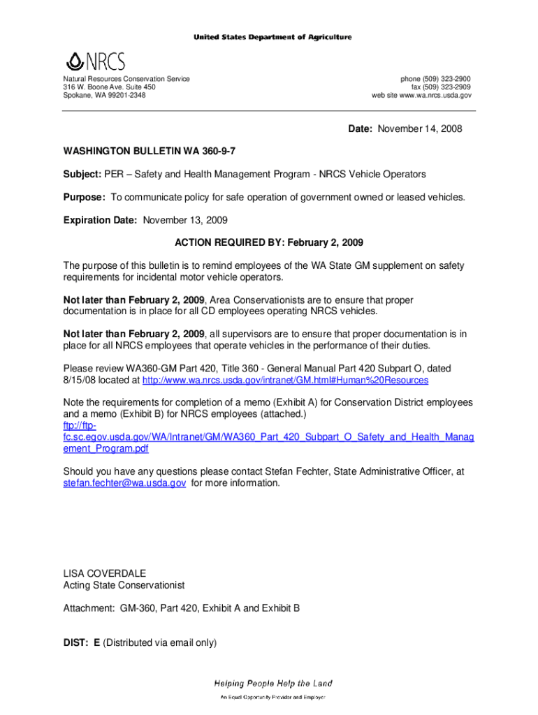 Natural Resources Conservation Service 316 W. Boone Ave. Suite 450 Spokane, WA 992012348phone (509) 3232900 fax (509) 3232909 website www.wa.nrcs.usda.govDate: November 14, 2008, WASHINGTON BULLETIN