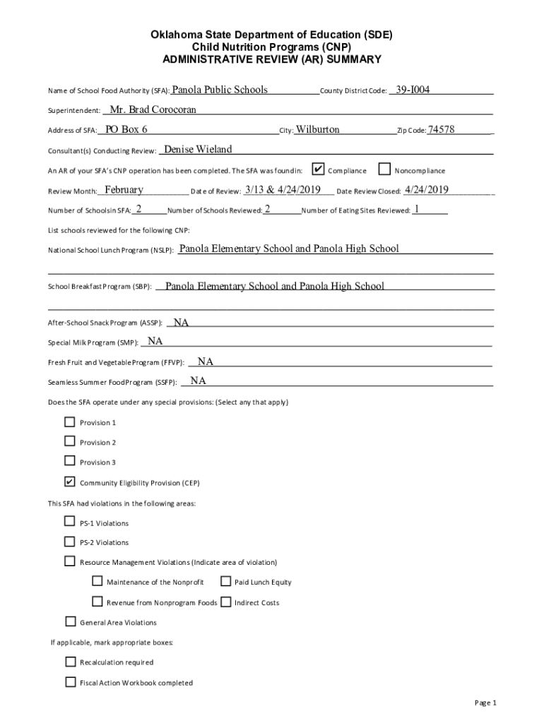 Get the free Name of School Food Authority (SFA): Panola - sde ok