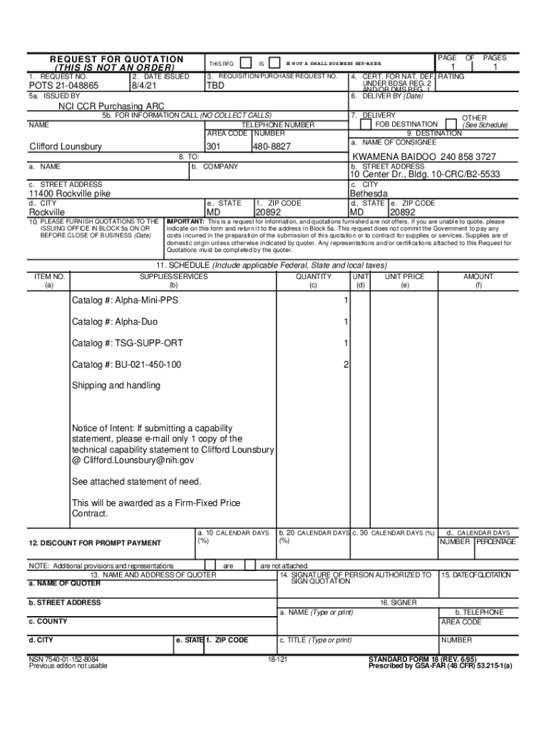 Posting Date: Aug 4, 2021 Closing Date: Aug 14, 2021 11:30 a.m. ET Reference Number: 21048865 To: NCI Bid Board From: Clifford Bloomsbury NCI CCR PARC Clifford. Lounsbury@NIH.gov Subject: NCI Bid