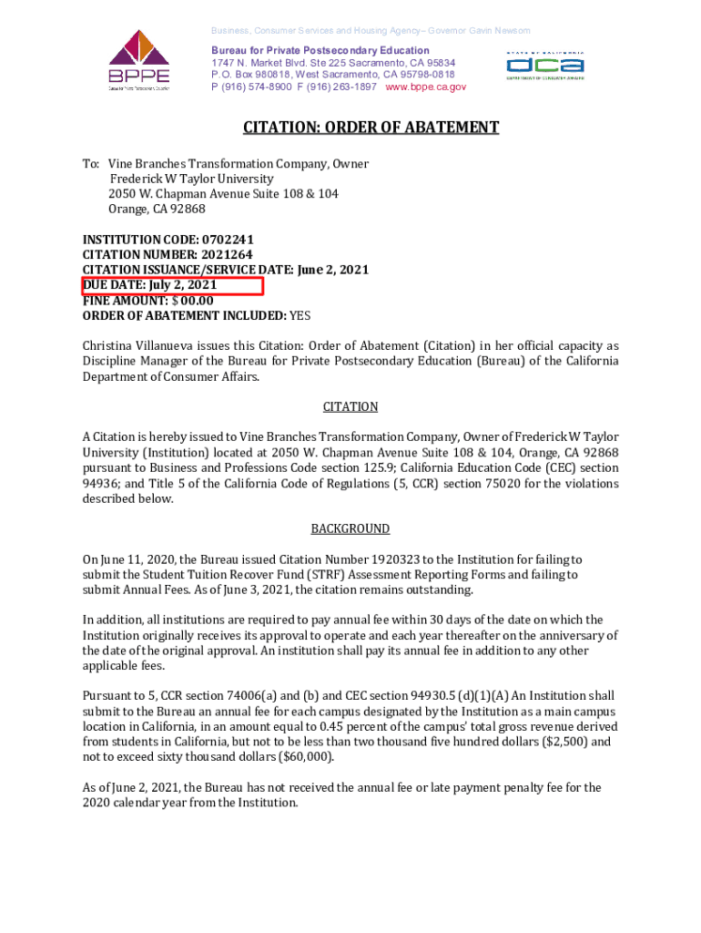 Get the free Bureau for Private Postsecondary Education - Frederick W. Taylor University - Order ...