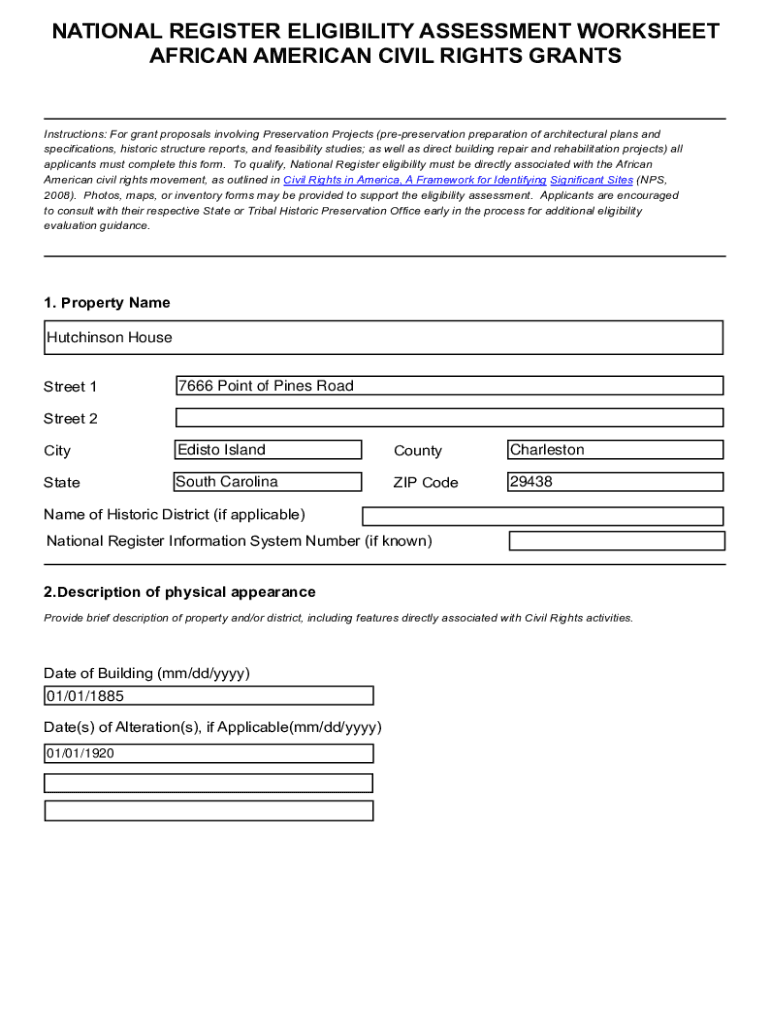 Get the free African American Civil Rights Preservation Grant Sample National Register Eligibilit...