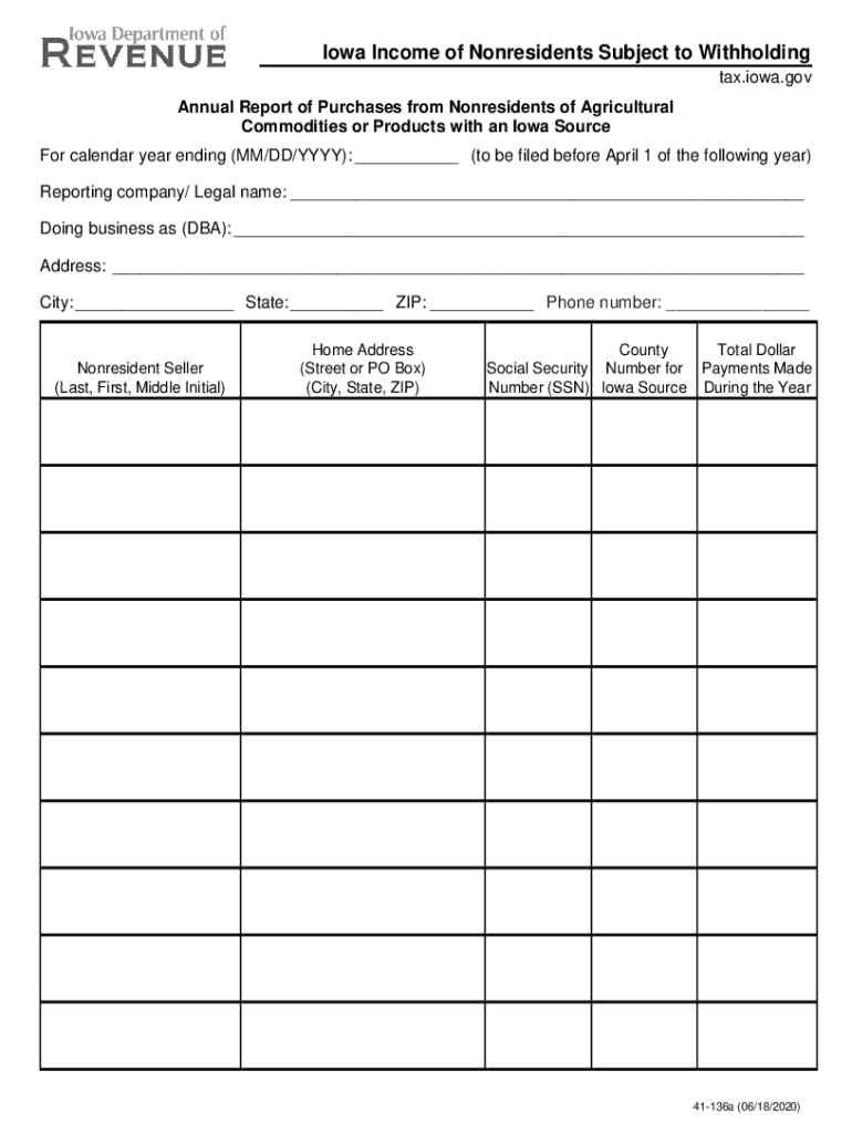 Iowa Income of Nonresidents Subject to Withholding tax.Iowa.gov Annual Report of Purchases from Nonresidents of Agricultural Commodities or Products with an Iowa Source For calendar year ending (MM/DD/YYY):