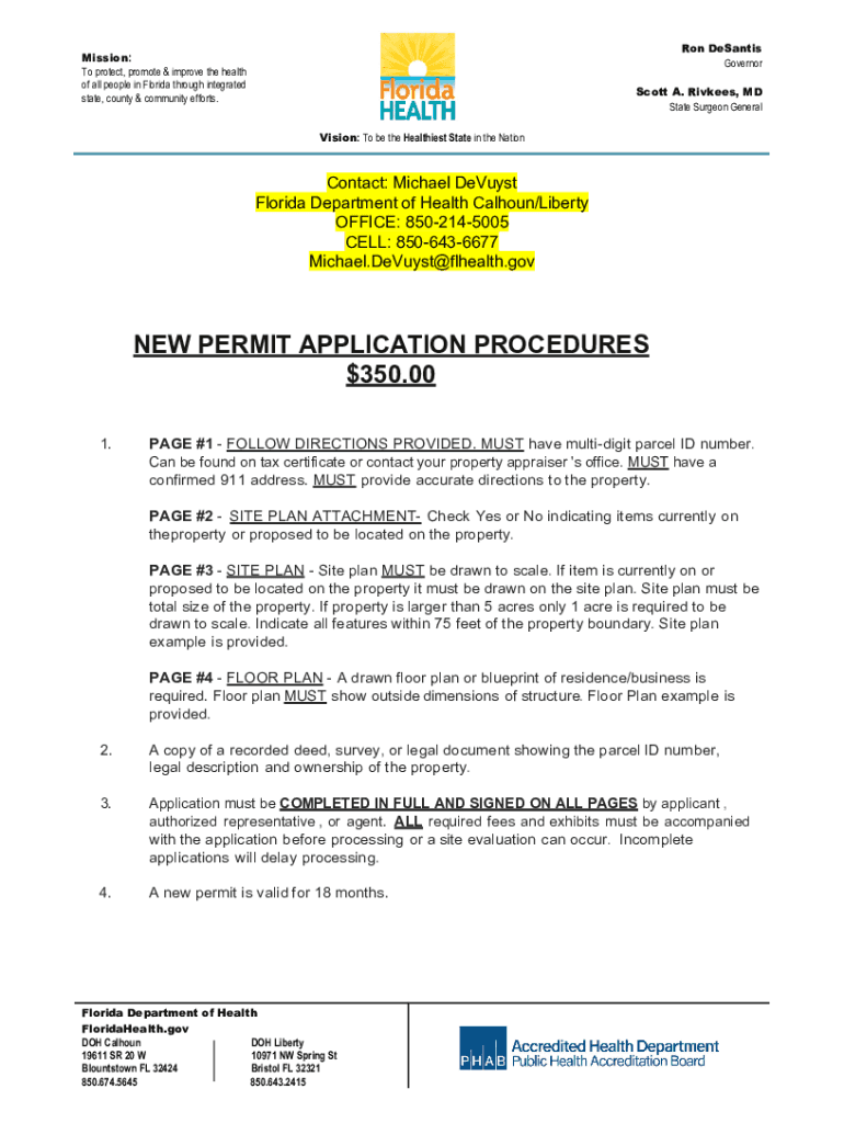 Get the free NEW PERMIT APPLICATION PROCEDURES $350.00 - calhoun floridahealth