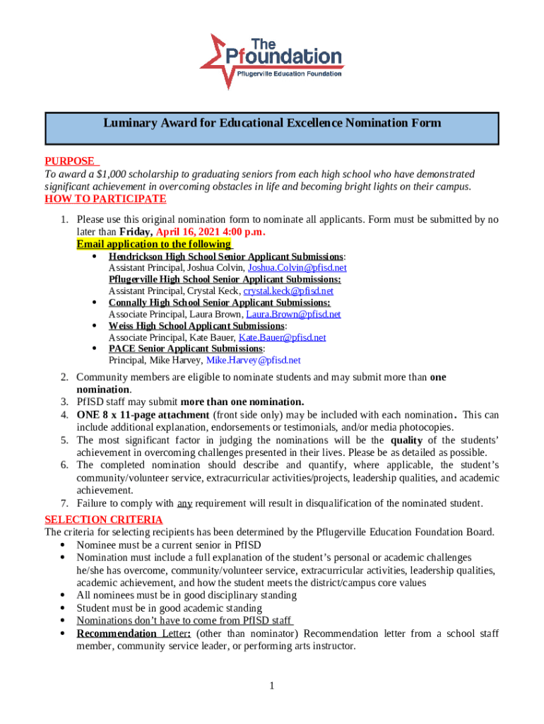 Instructions for the Nominations Open for Student Luminary AwardsAnnounce ... form
