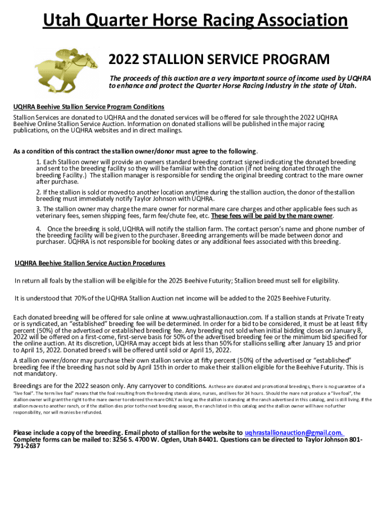 Get the free ng.aqha.comaqha-Utah Stallion Service Auction - AQHA