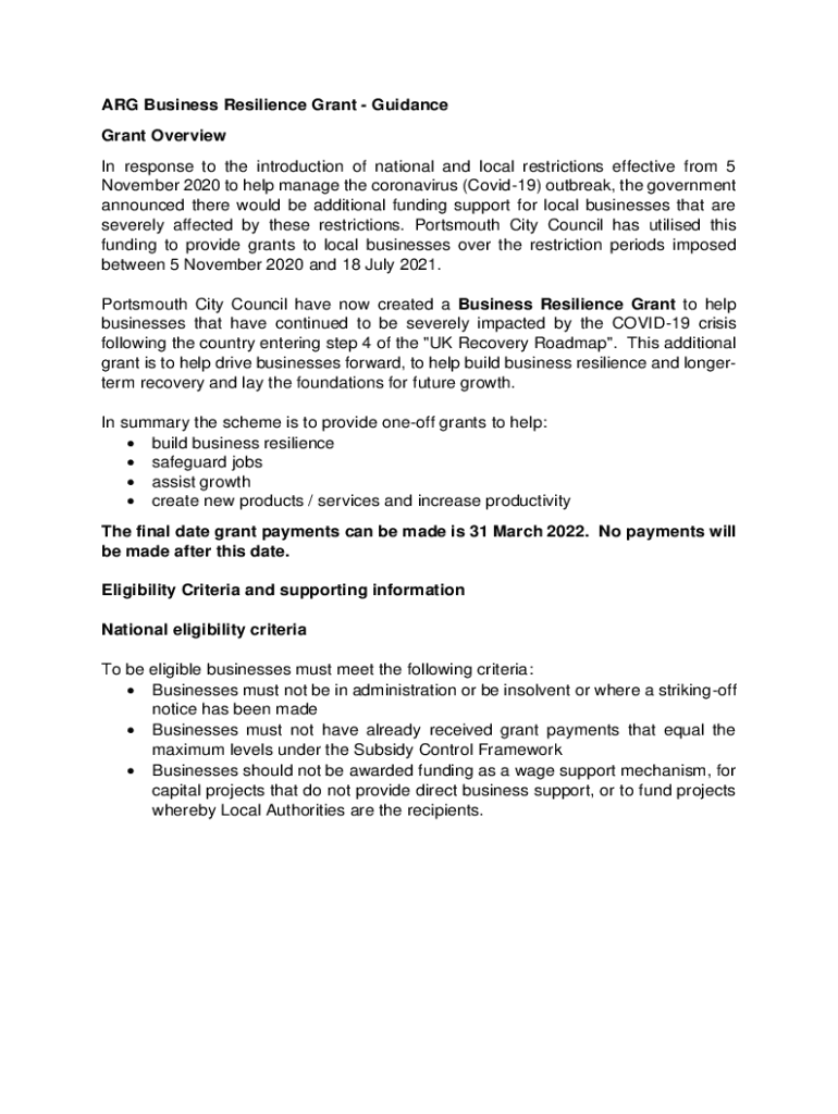 Get the free ARG Business Resilience Grant - Guidance Grant Overview