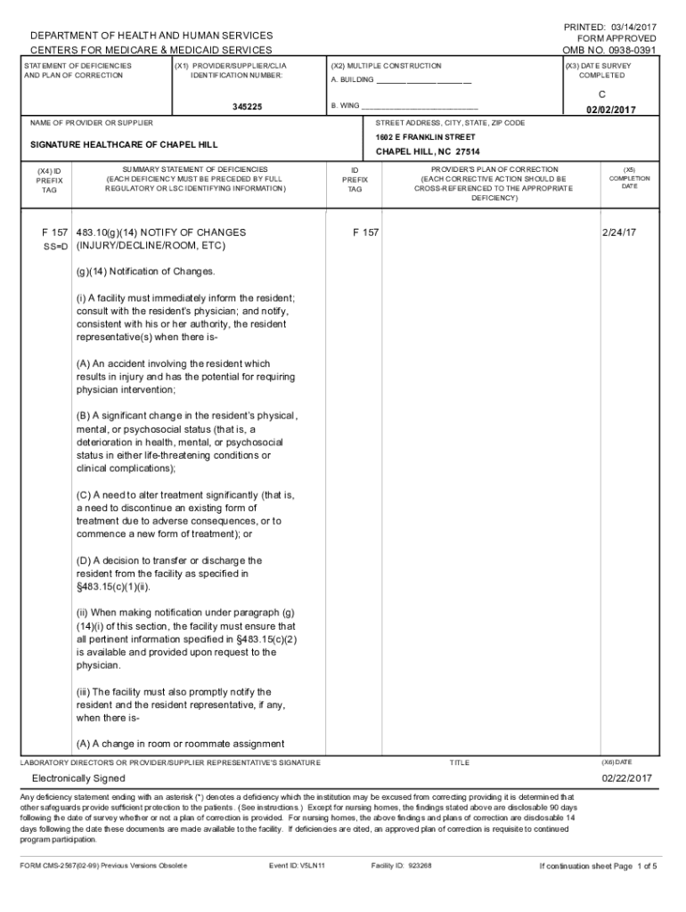 PRINTED: 03/14/2017 FORM APPROVEDDEPARTMENT OF HEALTH AND HUMAN SERVICES CENTERS FOR MEDICARE & MEDICAID SERVICES STATEMENT OF DEFICIENCIES AND PLAN OF CORRECTION(X1) PROVIDER/SUPPLIER/CIA IDENTIFICATION