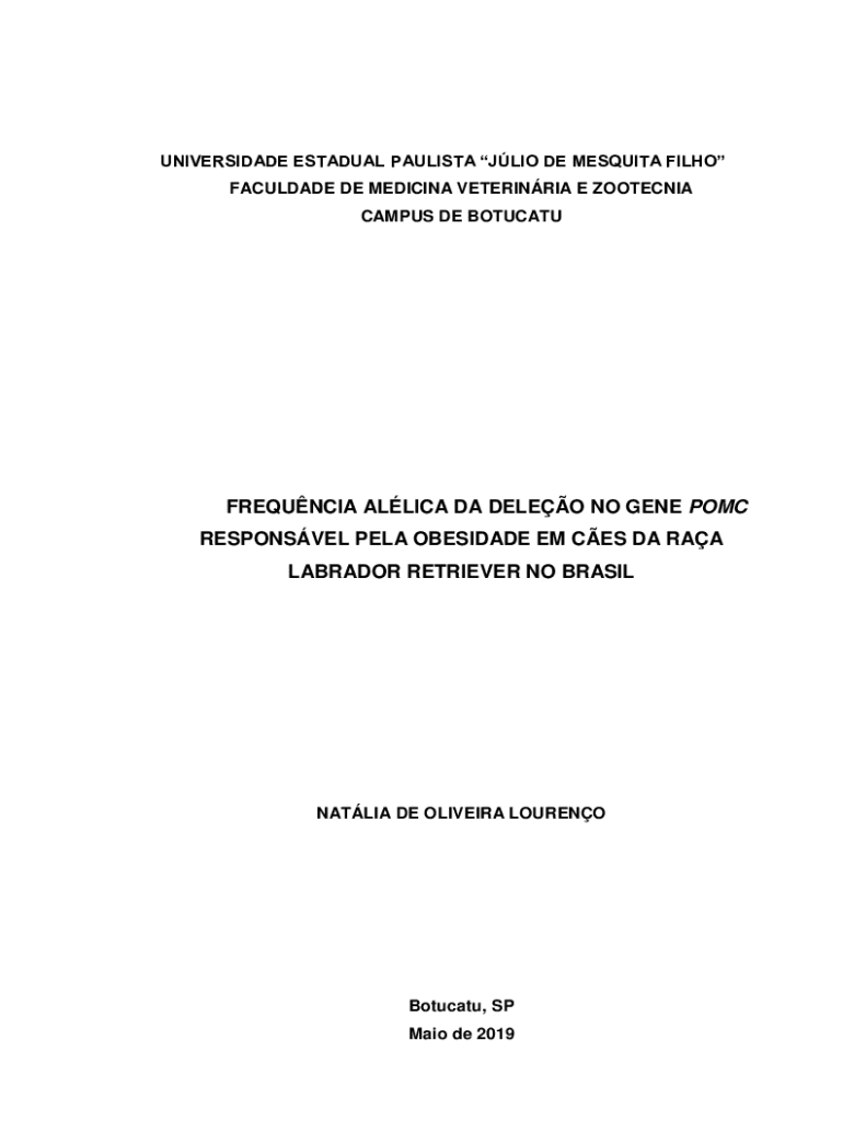 UNIVERSIDADE GRADUAL BAUTISTA JULIO DE MESQUITA FILHO FACADE DE MEDICINE VETERINARIAN E ZOOTECNIA CAMPUS DE BOTUCATUFREQUNCIA ALL ICA DA DELEON NO GENE POMP RESPONSE PEA BESIDE EM CES DA RAA LABRADOR